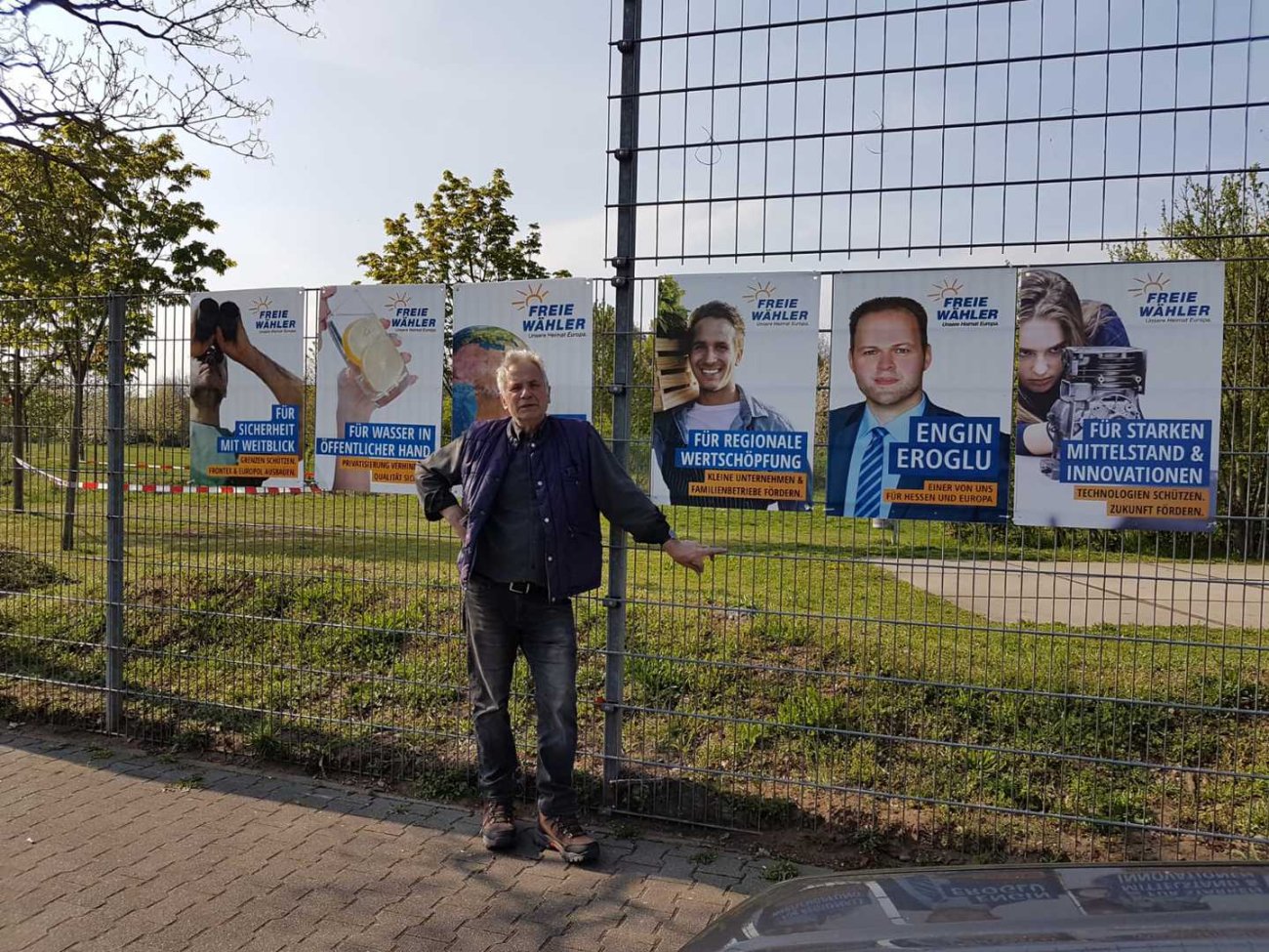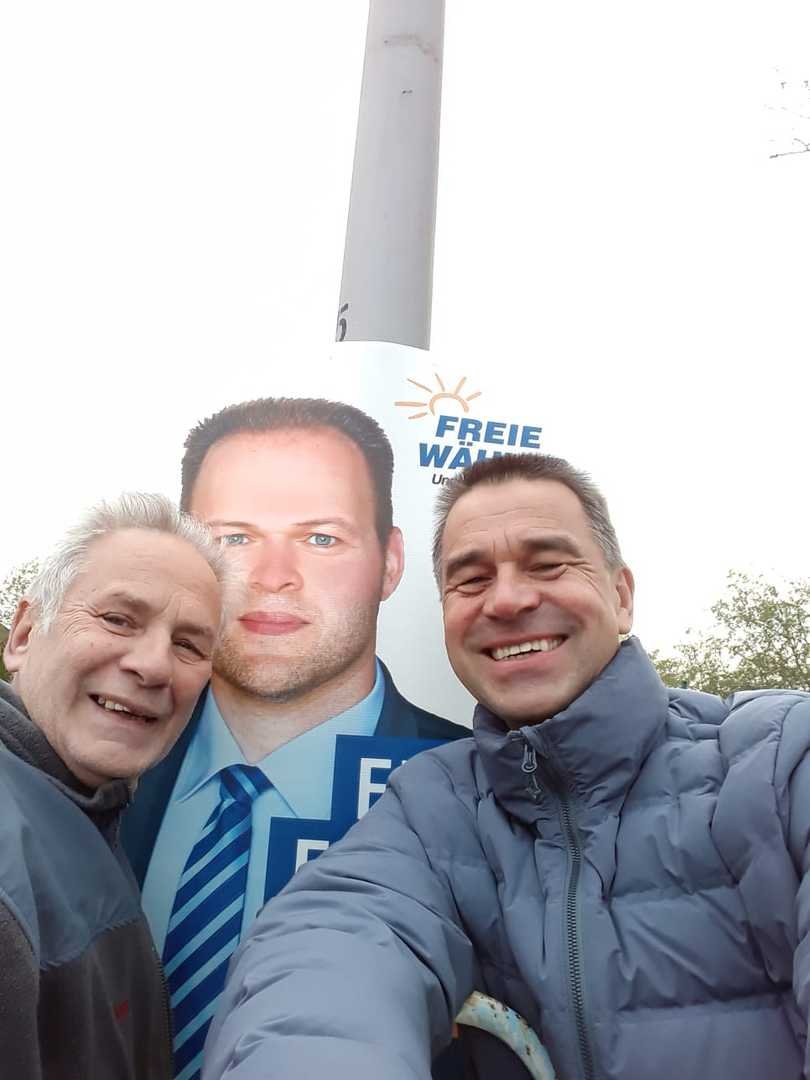 Unsere Bauzaunbanner und Plakate zur Europawahl mit den Helfern in Ginsheim-Gustavsburg