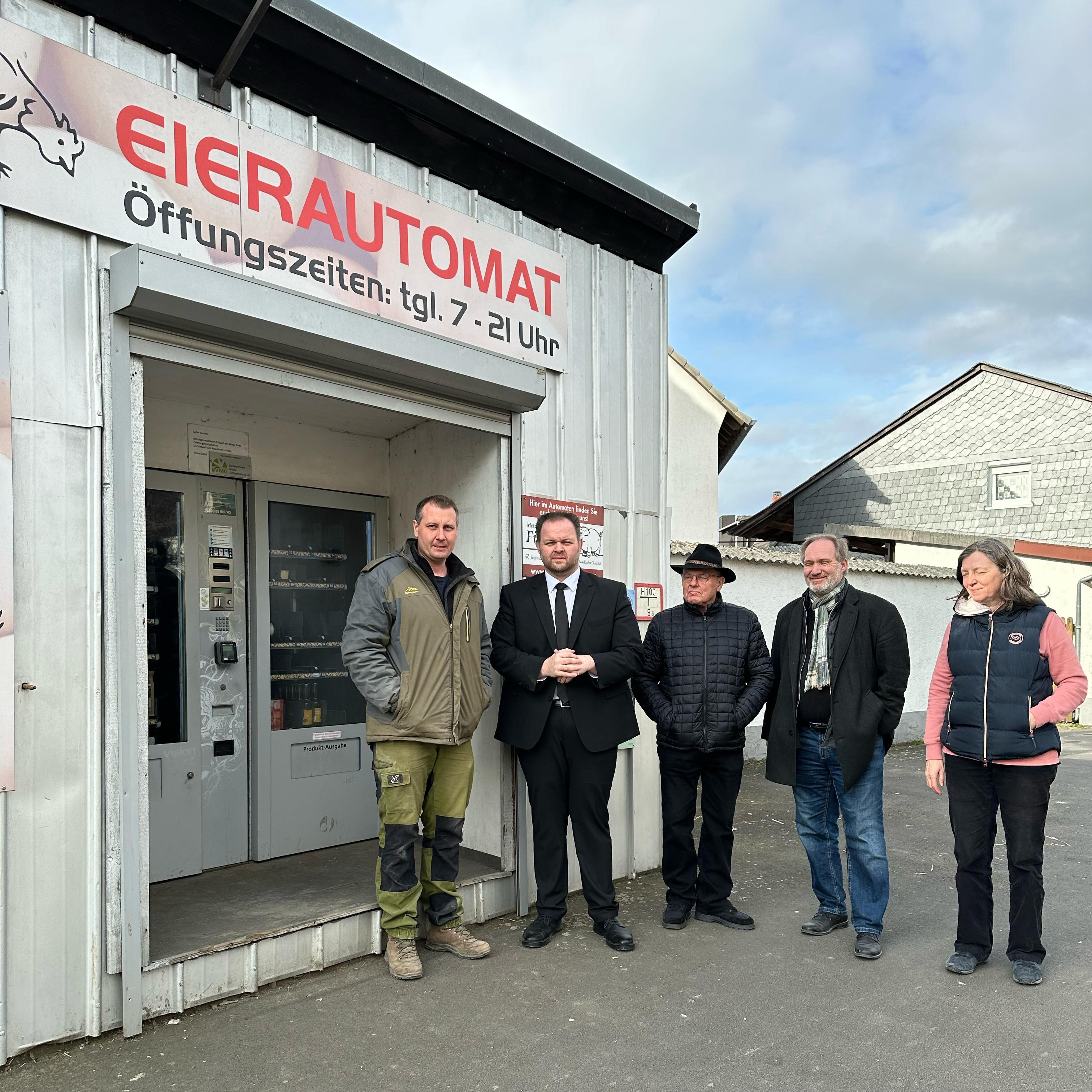 Am vergangenen Freitag besuchte der Europaabgeordnete Engin Eroglu mit Mitgliedern der FREIE WÄHLER Hessen die Borsdorfer Eierschachtel von Daniel Goldhammer in Nidda.