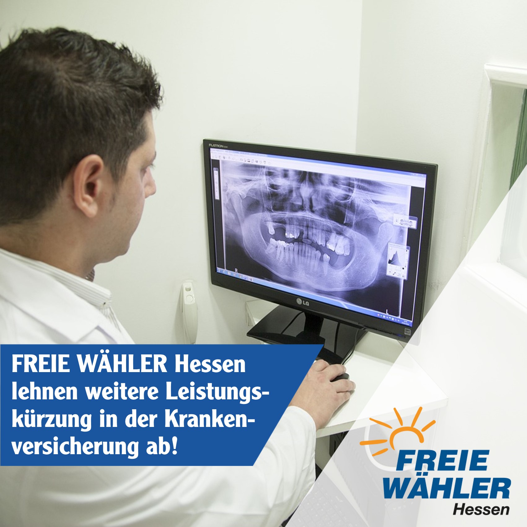 Die FREIE WÄHLER Hessen fordern weiterhin die Übernahme von Zahnbehandlungen und eine Förderung der freiwilligen Vorsorge. Der Leistungskatalog ist ohnehin in der Vergangenheit stark gekürzt worden, sodass Patienten oft hohe Selbstbeteiligungen zahlen müssen. Eine weitere Verschärfung dieser Situation lehnen wir ab! Wir müssen zu einem robusten sozialverträglichen Gesundheitssystem zurückkommen – in dem nicht jedwede Leistung über eine Zusatzversicherung abgesichert werden muss.